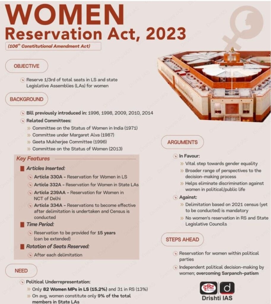 Here comes the major part “ The constitution of India”, the supreme law of the Republic of India, Which gave woman equal political rights, including the right to vote , run for office and participate in government.